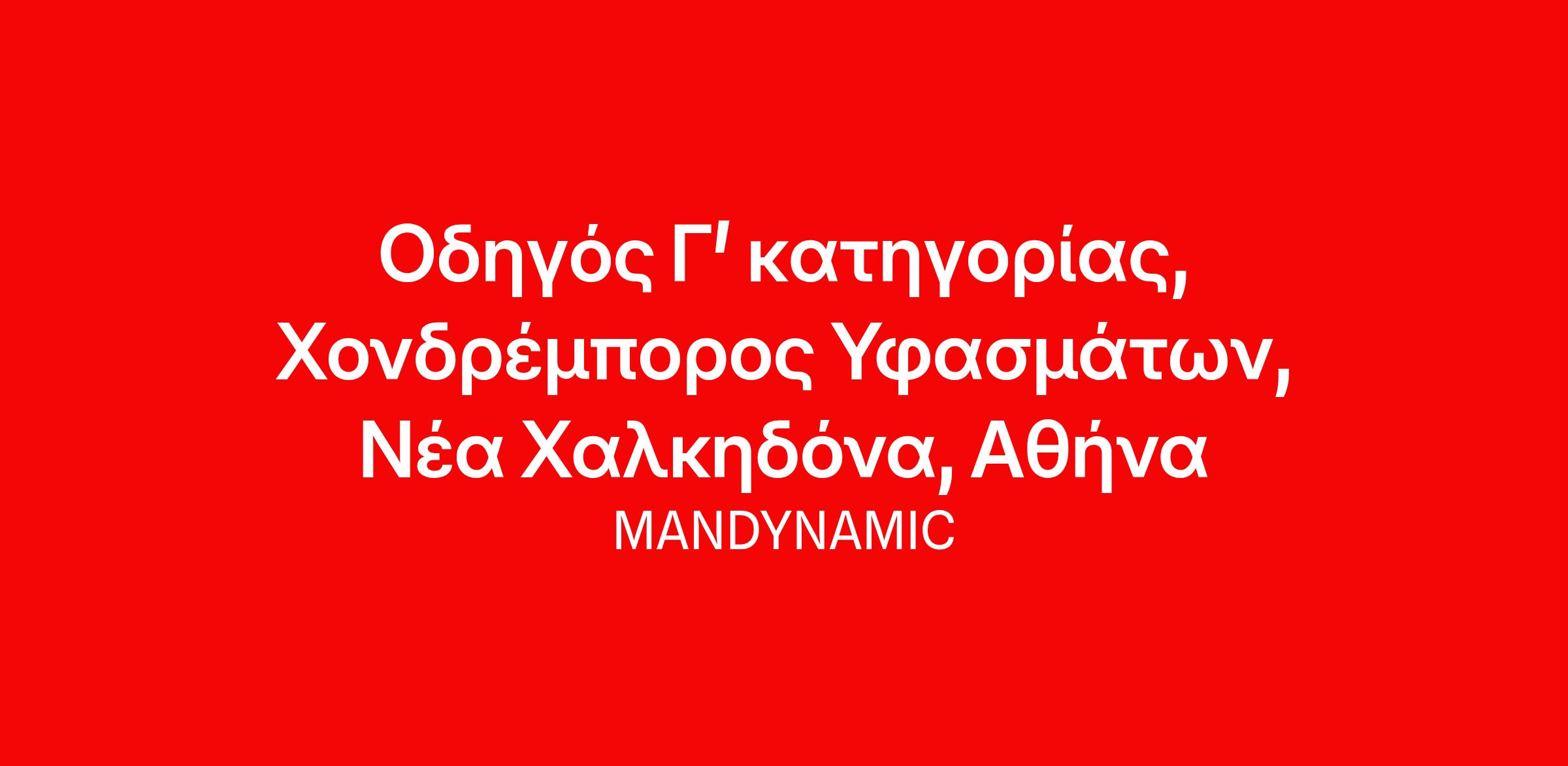Η MANDYNAMIC αναζητά Οδηγούς Γ' κατηγορίας εκ μέρους Χονδρέμπορου Υφασμάτων στη Νέα Χαλκηδόνα, Αθήνα.