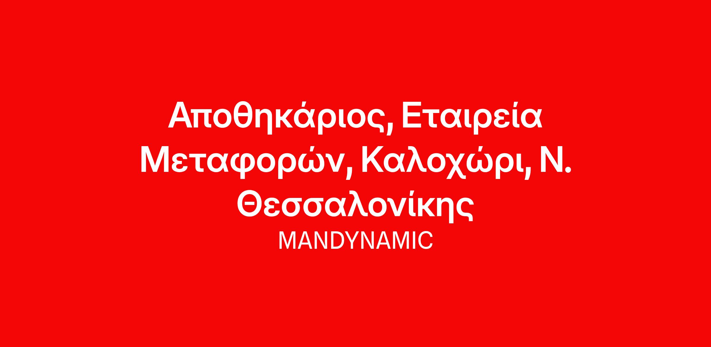 Η MANDYNAMIC αναζητά αποθηκάριο εκ μέρους εταιρείας μεταφορών, στο Καλοχώρι Θεσσαλονίκης.