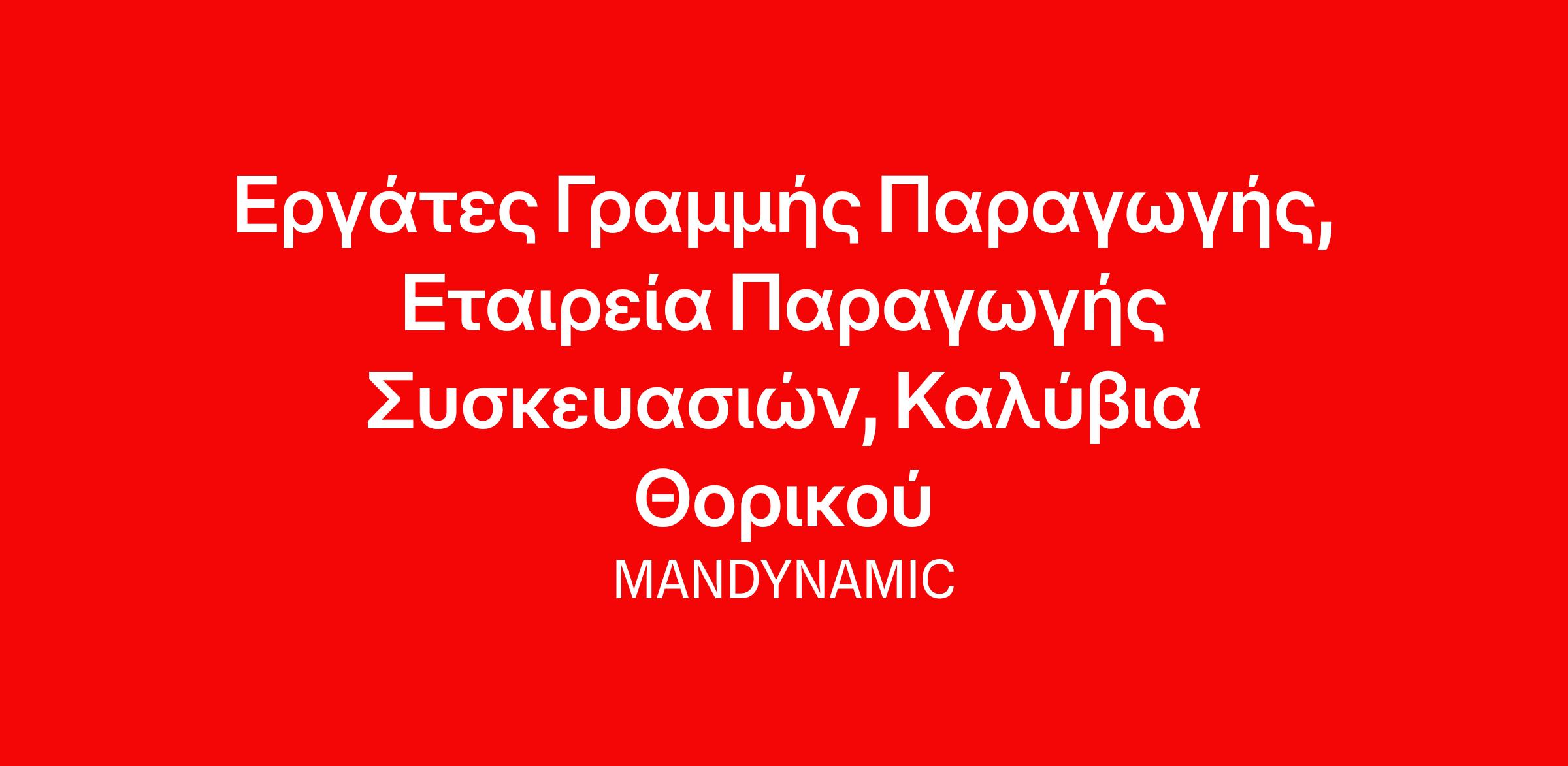 Η MANDYNAMIC αναζητά Εργάτες Γραμμής Παραγωγής εκ μέρους Εταιρείας Παραγωγής Συσκευασιών στα Καλύβια Θορικού, Αττική.