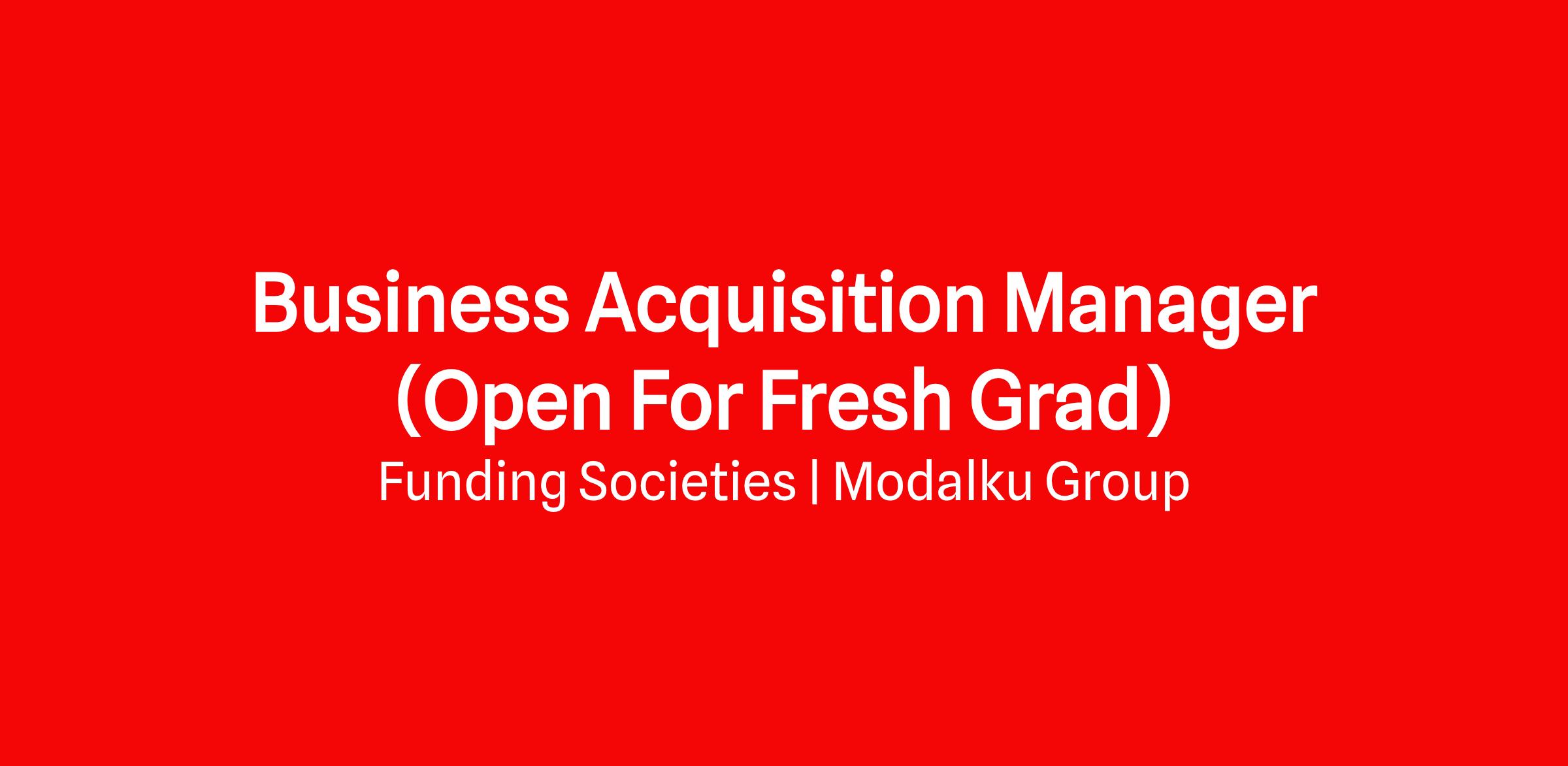 In this Business Acquisition Manager role, associates will get the opportunity to showcase products under FS Capital on behalf of Funding Societies Pte Ltd as the best solution provider to meet our customers financing requirements and to grow together with their business. This role is extremely exciting and critical as qualifying associates will be FSβs engine to help scale up new businesses with our existing and newly launched products