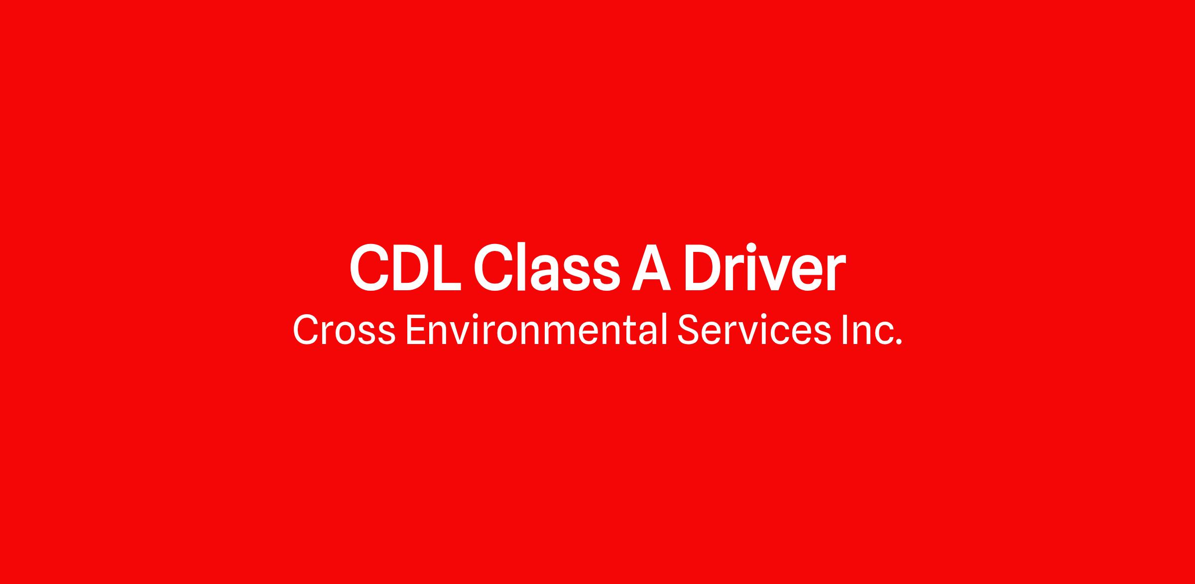 Cross Environmental Services, Inc. is seeking Class A Driver.