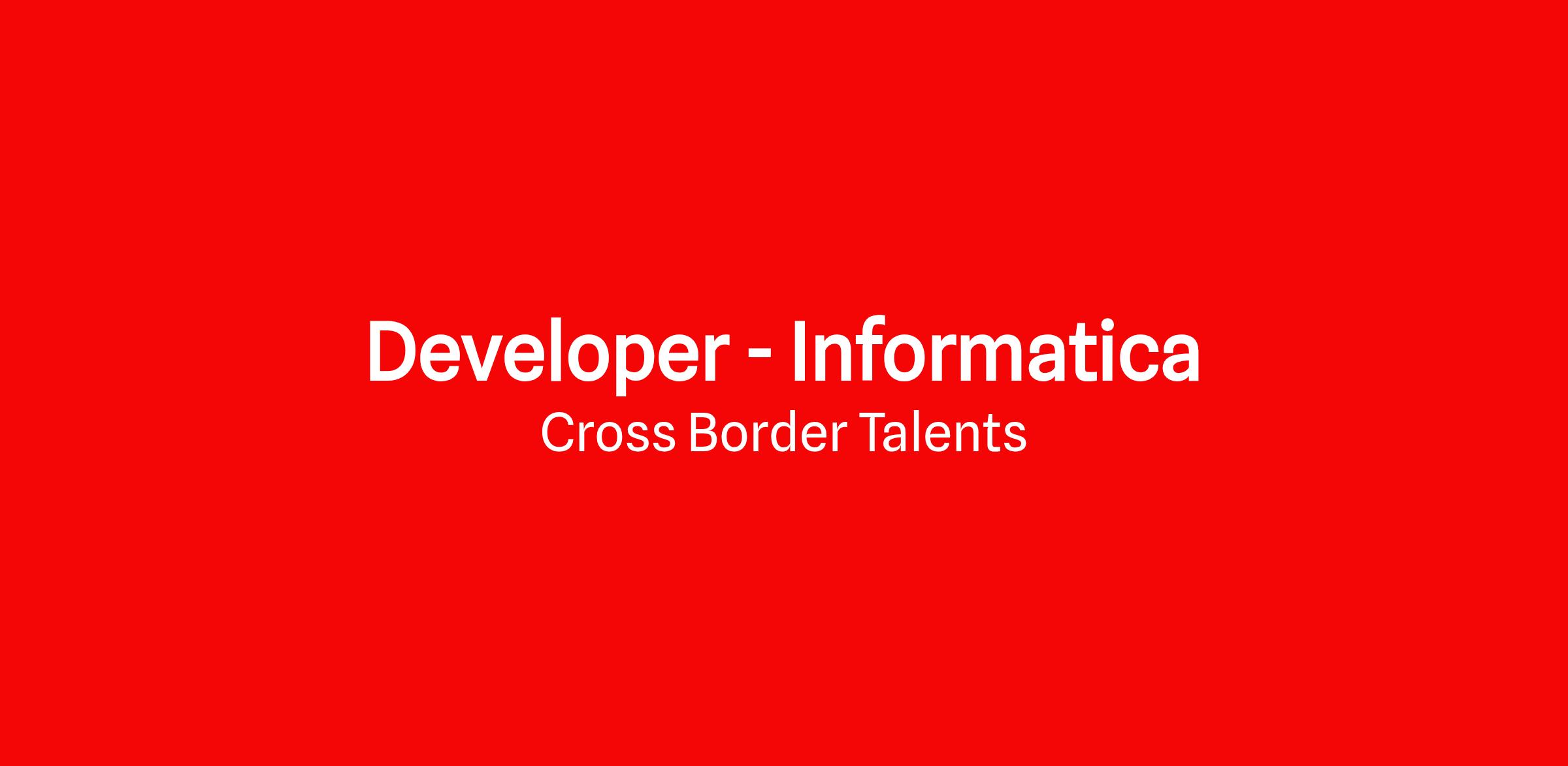 Cross Border Talents is searching for a Developer in Informatica for our client in Portugal-Lisbon. Our client is part of the world top groups leading insurance and asset management. They are present worldwide and looking for someone who would like to work full time role, from the Lisbon office.