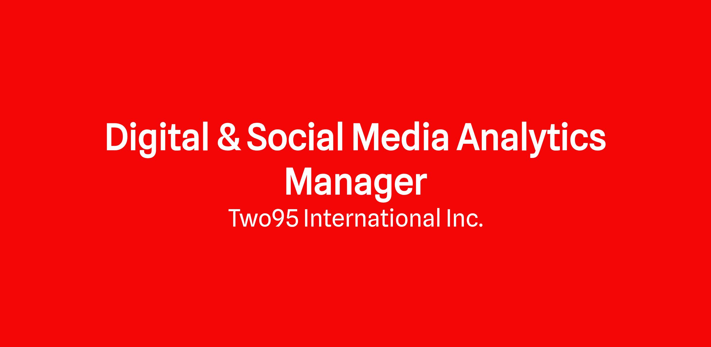 Title: Digital & Social Media Analytics Manager