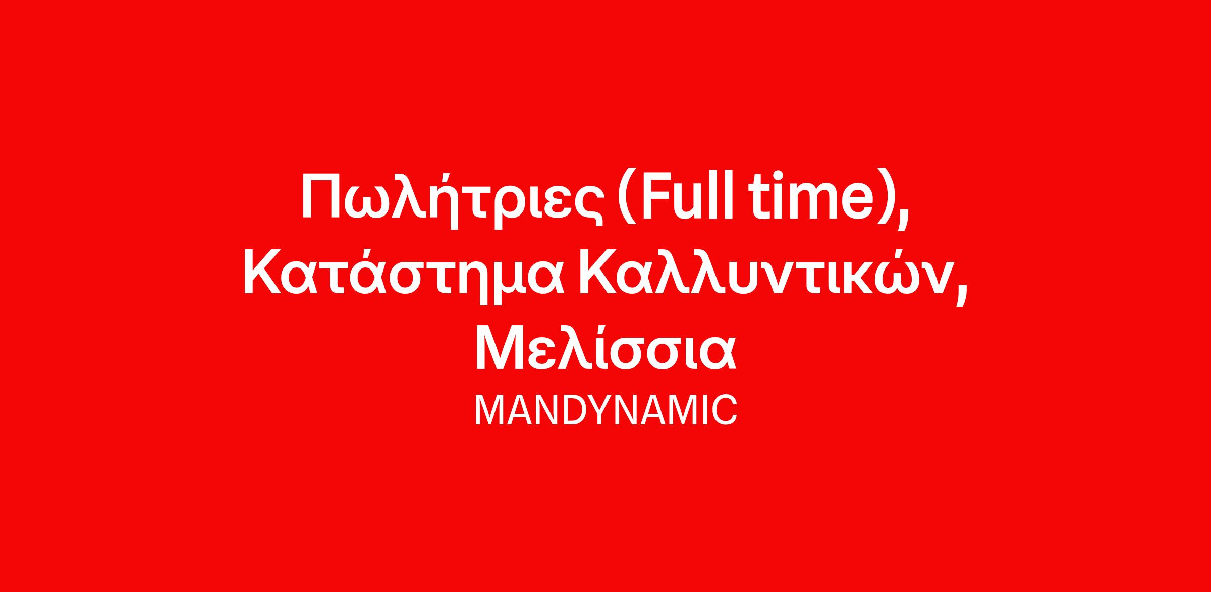 Η MANDYNAMIC αναζητά Πωλήτριες εκ μέρους μεγάλης αλυσίδας καλλυντικών για το νέο κατάστημά της στο Μελίσσια!