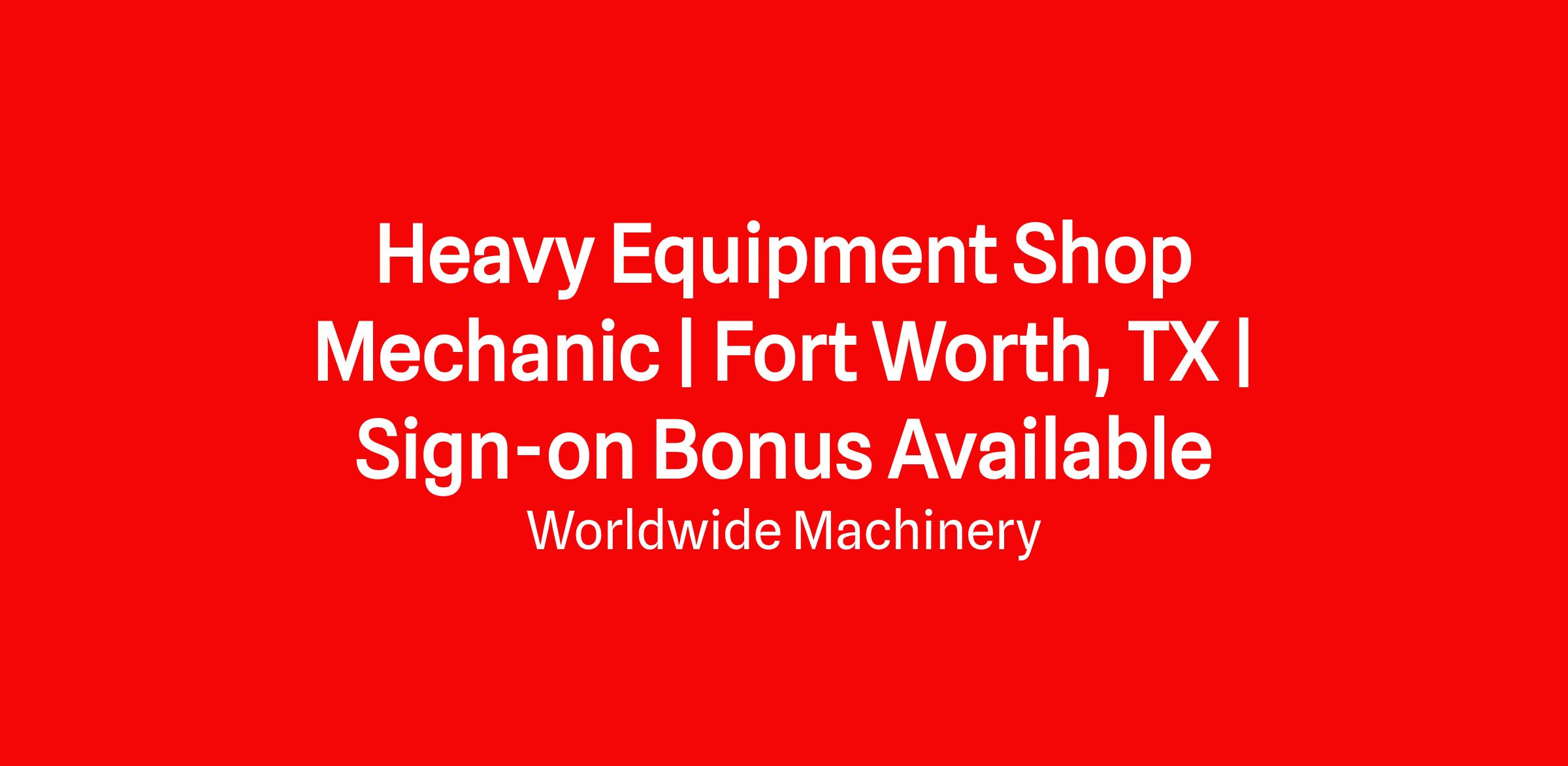 Heavy Equipment Shop Mechanic | Fort Worth, TX | Sign-on Bonus Available