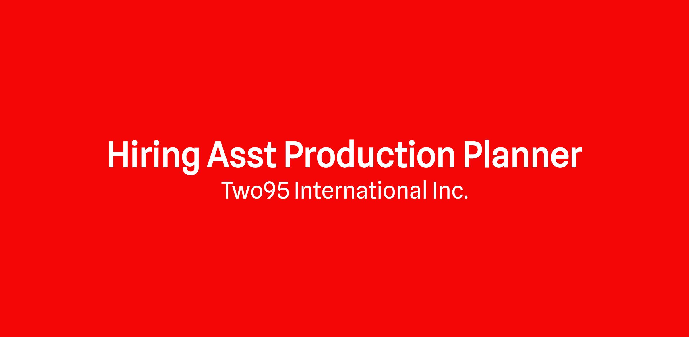 Hiring Production Assistant Planner