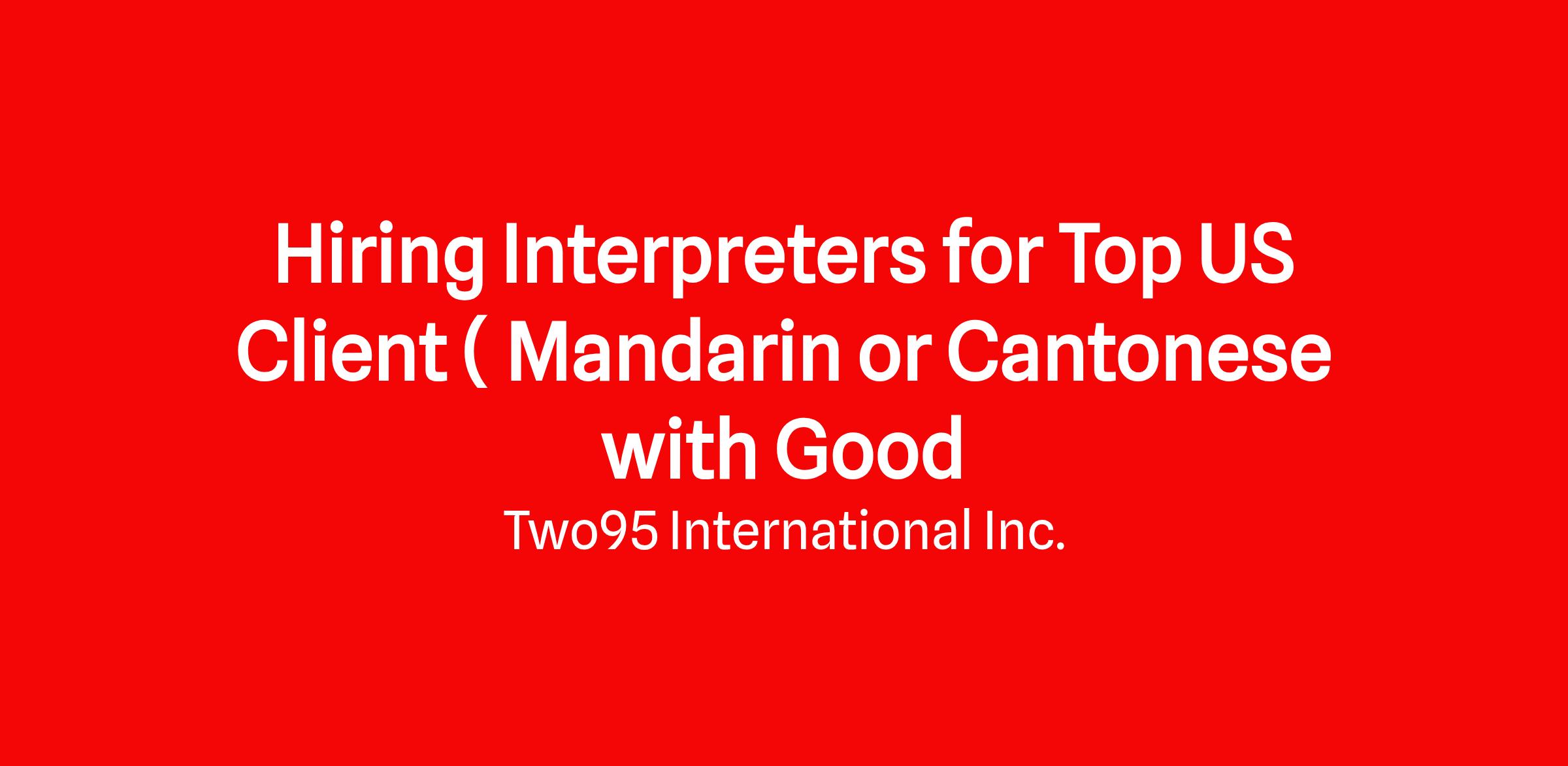 Hiring Interpreters for Top US Client ( Mandarin or Cantonese with Good