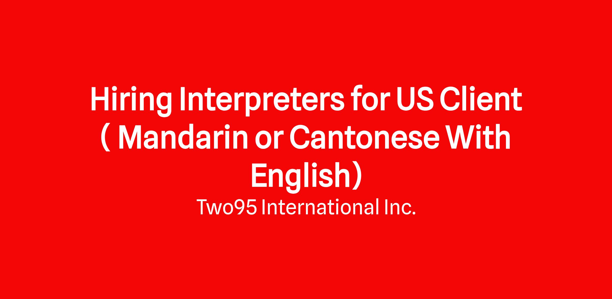 Hiring Mandarin or Catonese / English Interpreters ( Work from home, Only Night shift for One of the Top US Client)