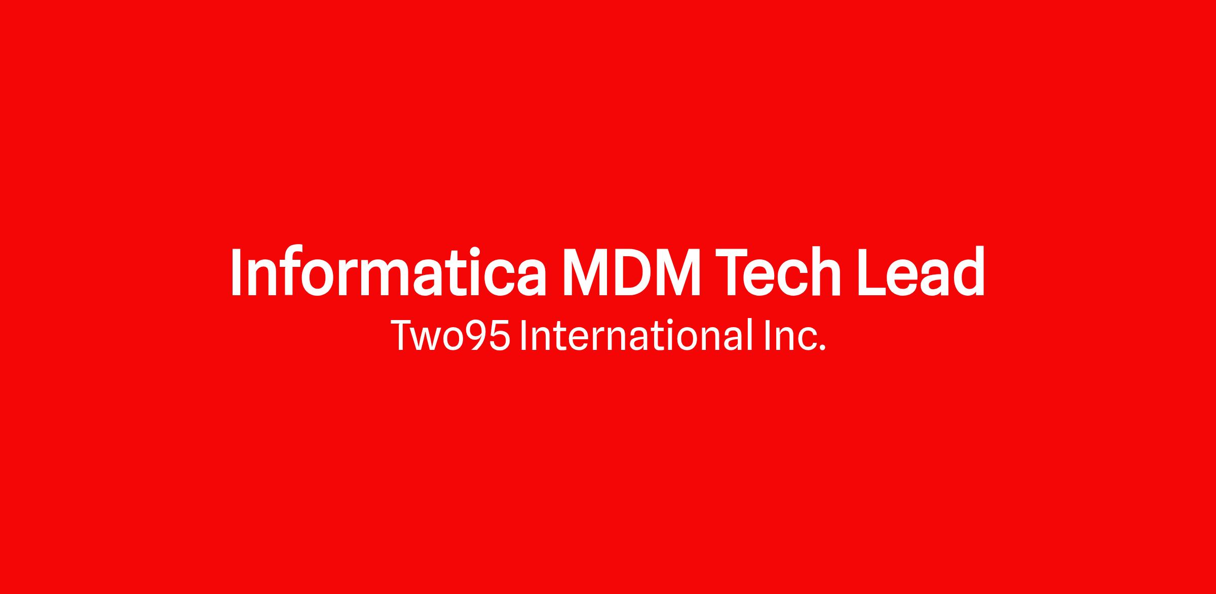 Title: Informatica MDM Tech Lead