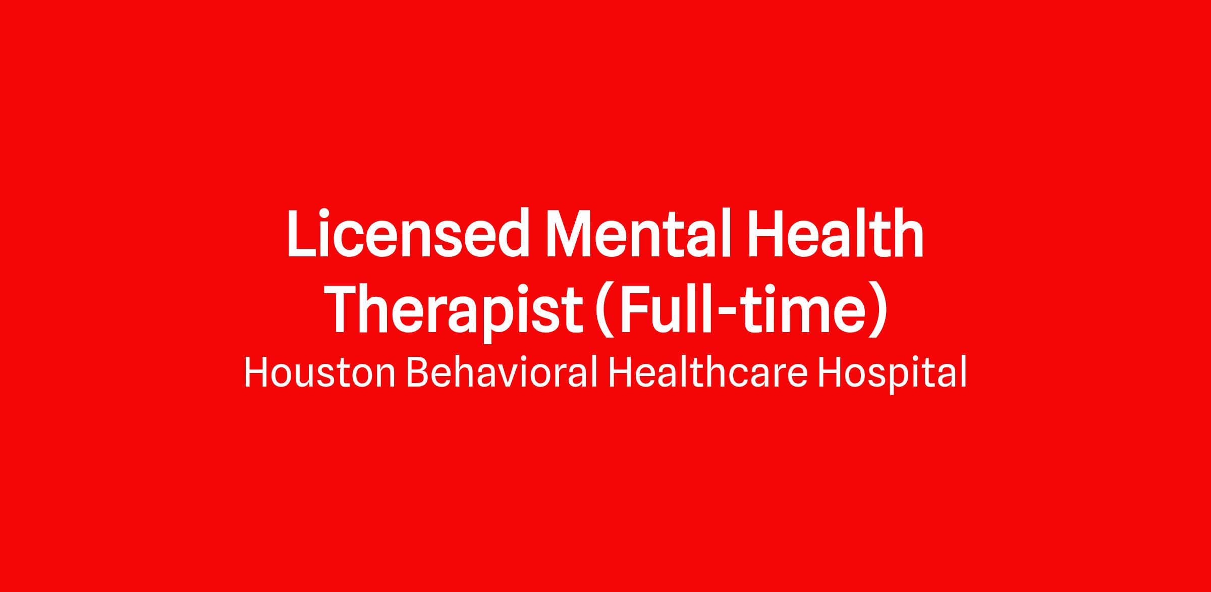 Currently, Houston Behavioral Healthcare Hospital is accepting resumes for full time Licensed Mental Health Therapists (LMSW, LCSW, LPC-A, LPC). We provide a continuum of services that allow for individualized treatment at the most appropriate level of care in the least restrictive benefit and good outcomes and stay at a continued state of readiness for the next patient.