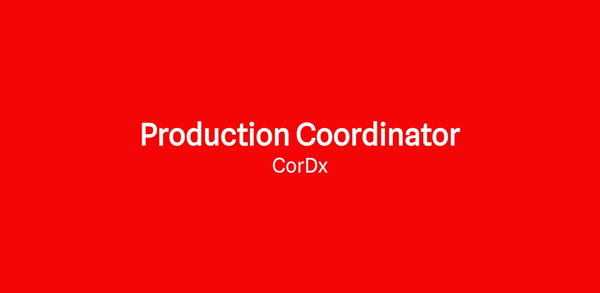 CorDx is a leading biotechnology company that specializes in the development, manufacturing, and distribution of innovative diagnostic solutions. We are looking for a highly motivated and detail-oriented Production Coordinator to support the production team in delivering high-quality products to our clients. As a Production Coordinator, you will work closely with the production team to ensure that all manufacturing processes are carried out smoothly and efficiently. You will also be responsible for organizing and maintaining production schedules, monitoring inventory levels, and coordinating with various departments to ensure timely delivery of products to our customers.