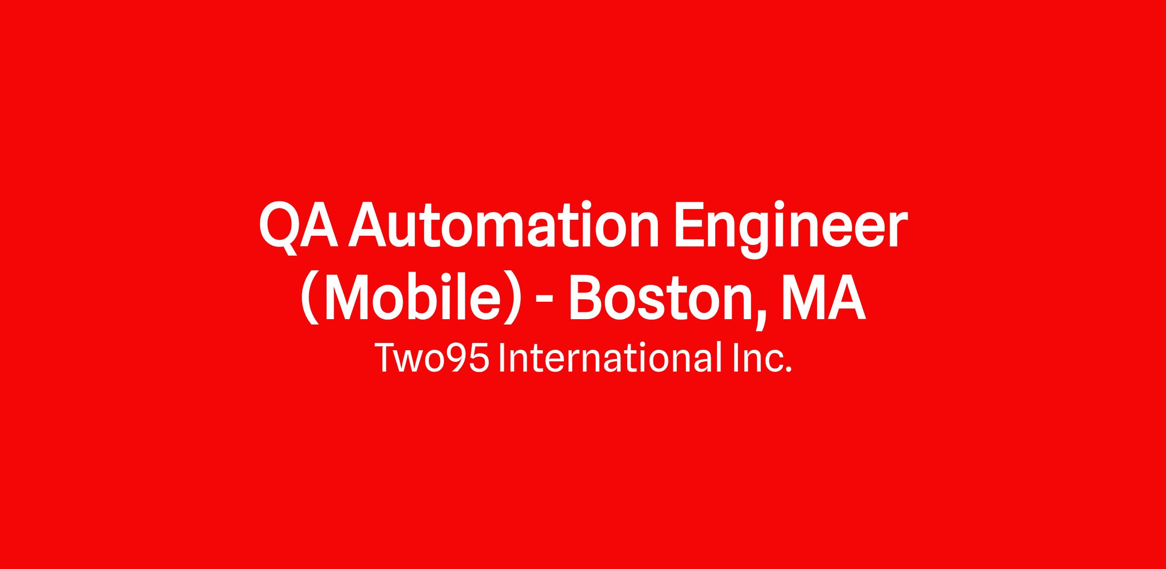 QA Automation Engineer (Mobile) - Boston, MA