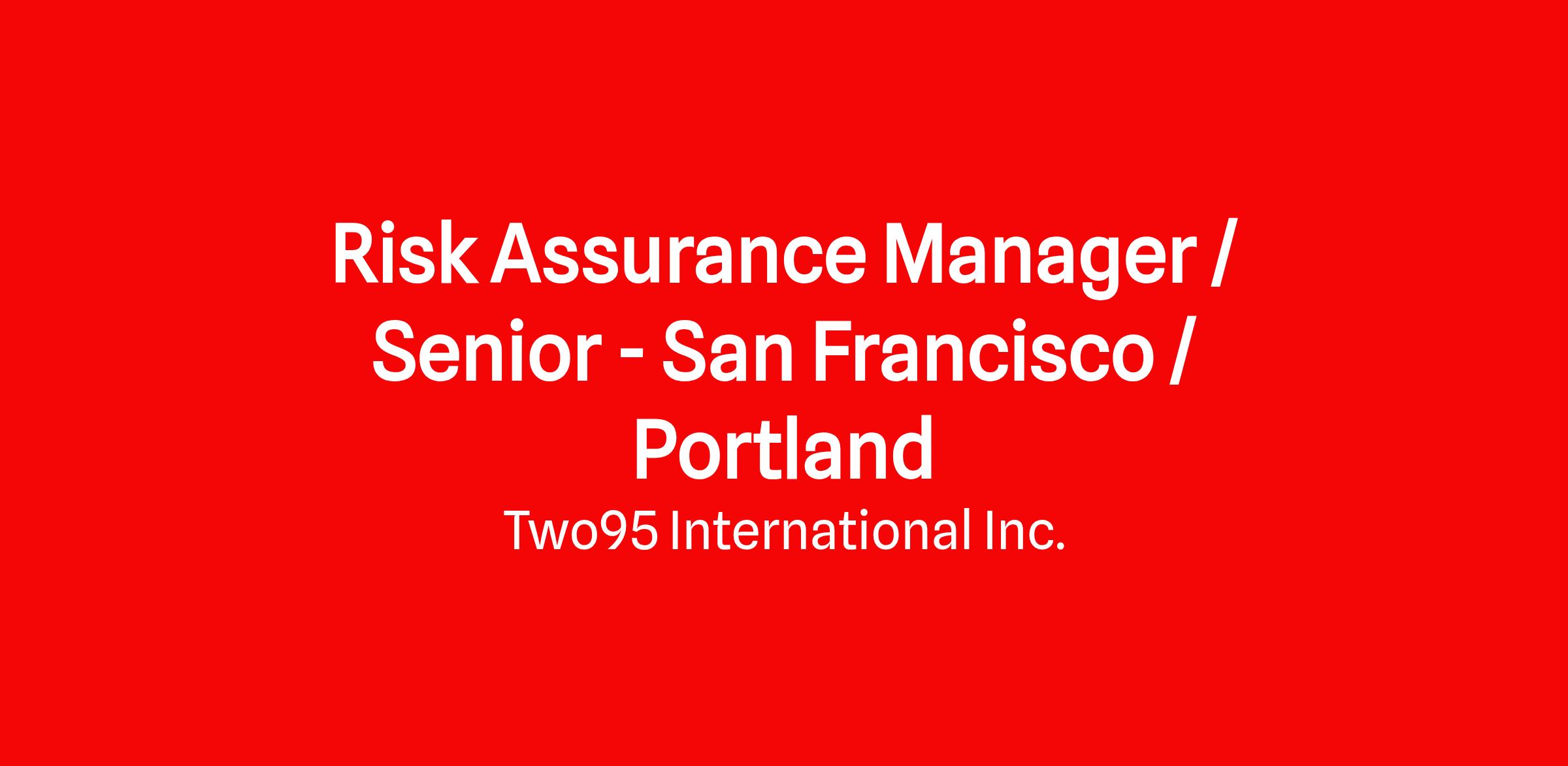 Title: Risk Assurance Manager / Senior
