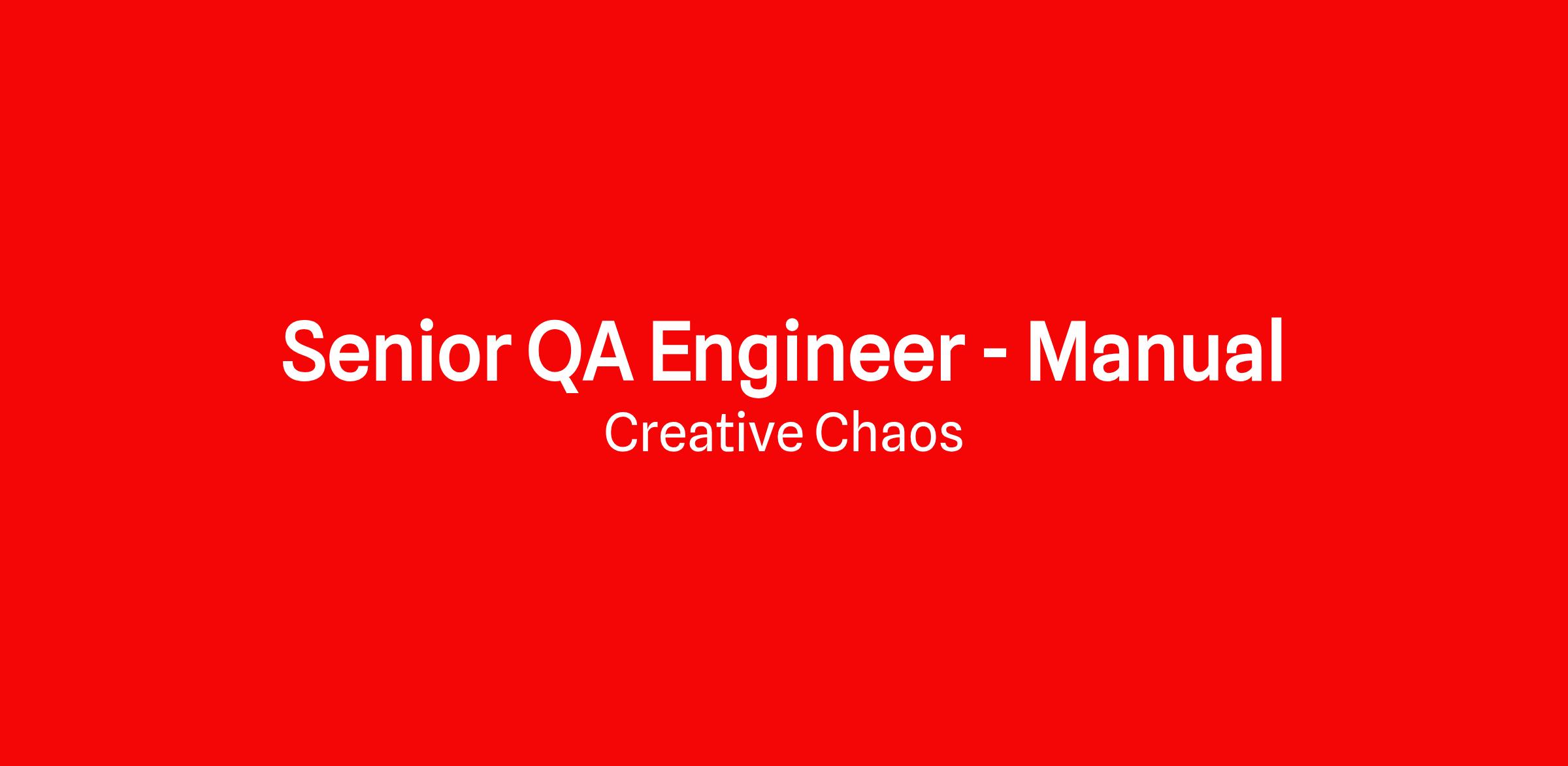 A Senior QA Engineer is an associate at Creative Chaos who is mainly responsible for designing and implementing tests, debugging, and defining corrective actions. They will also review system requirements and track quality assurance metrics. Senior engineers have a responsibility to mentor their juniors and build team strength through training.