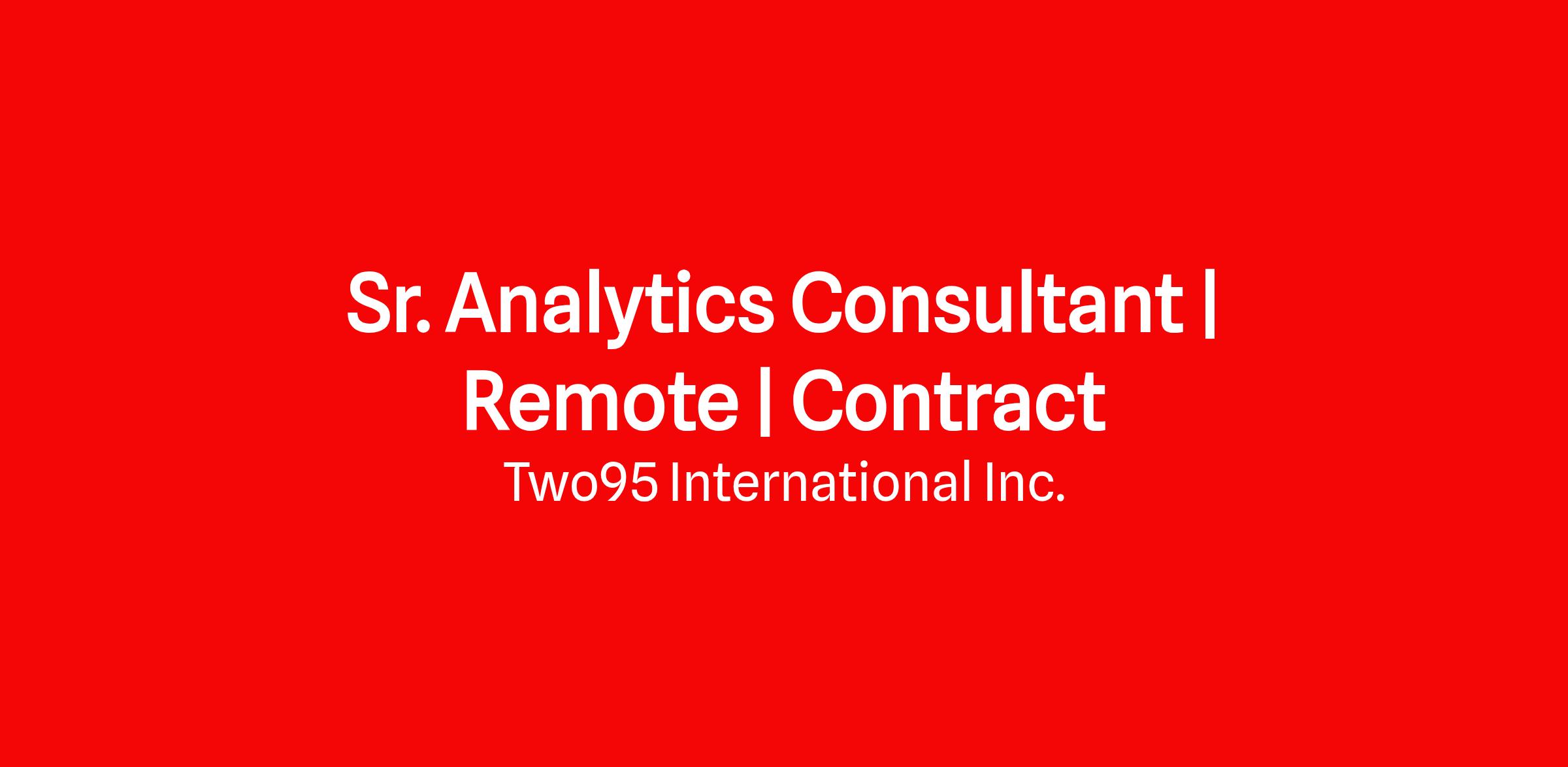 Job Title: Sr. Analytics Consultant
