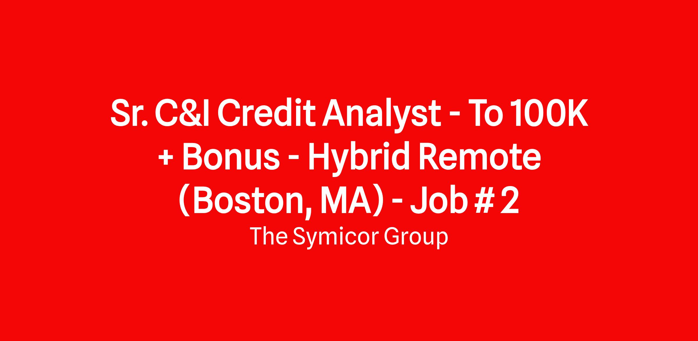 Our Massachusetts-based bank client is seeking to fill a Hybrid Remote Sr. C&I Credit Analyst role in the Boston, MA area. The position is responsible for obtaining loan request information from commercial lenders or borrowers to analyze credit information, financial statements, and other related information pertaining to the loan.