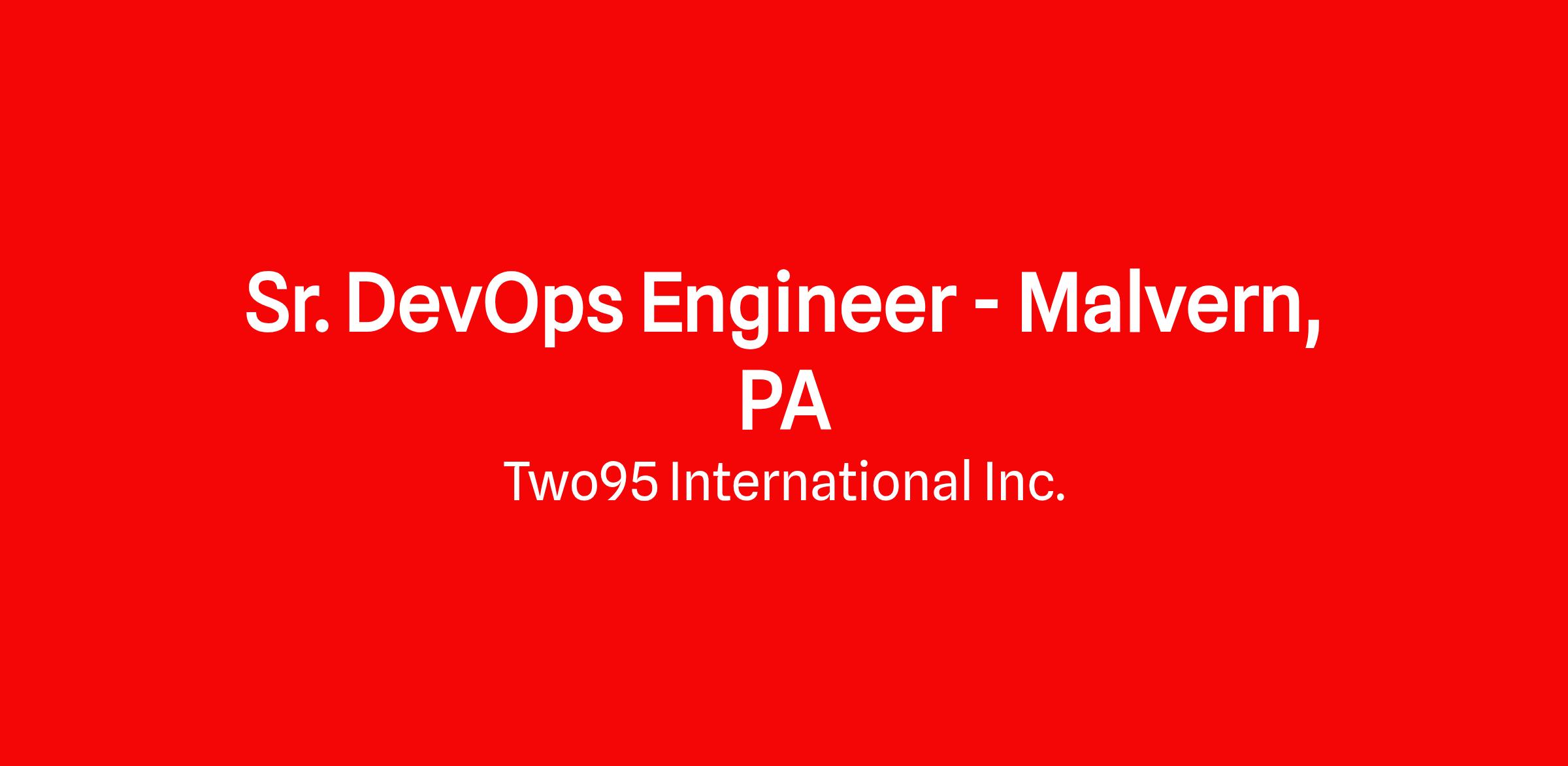 Sr. DevOps Engineer β Malvern, PA