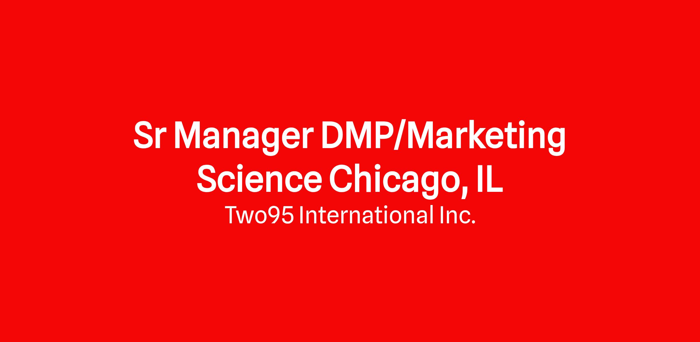 Title: Senior Manager; DMP/Marketing Science