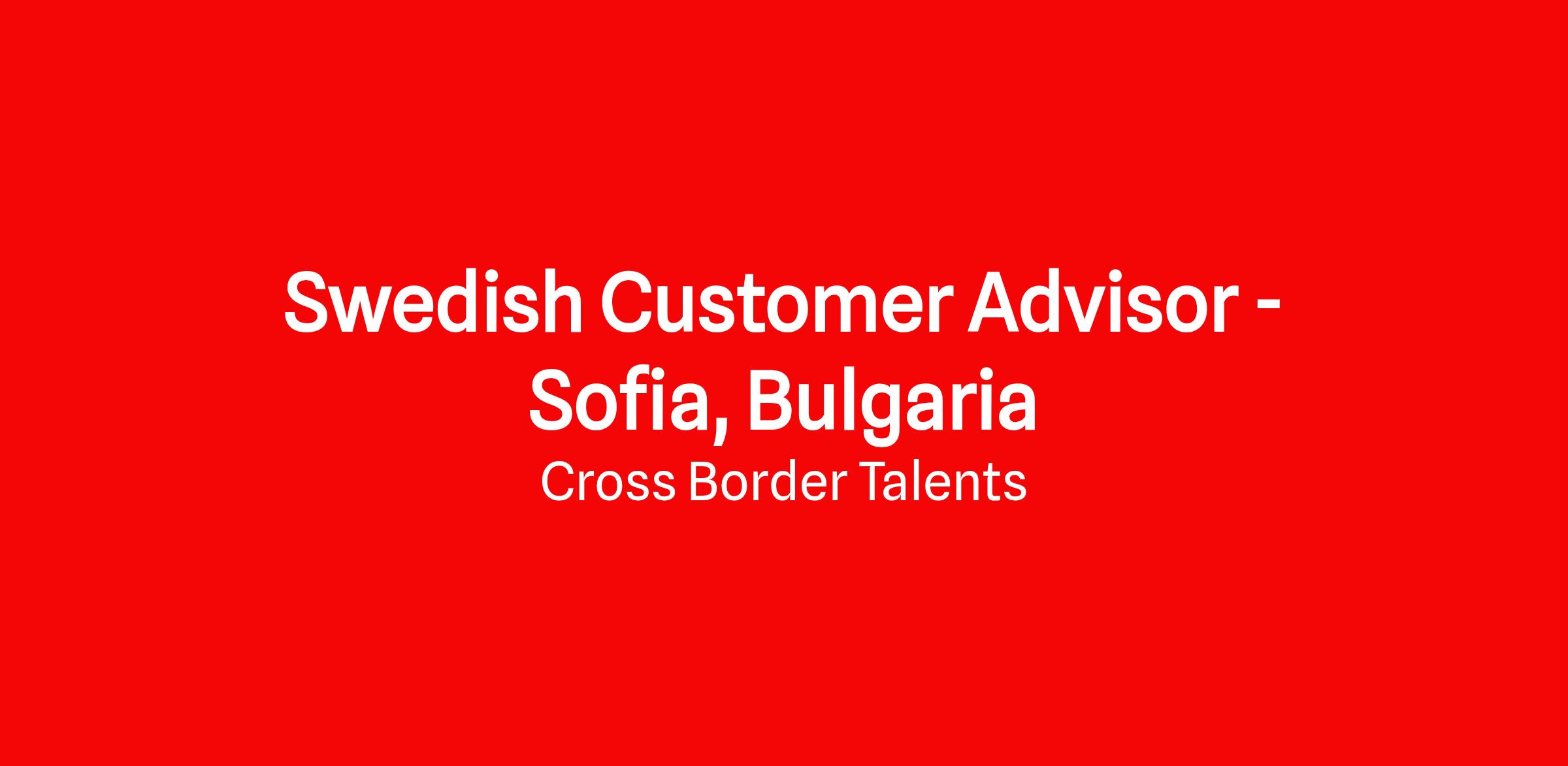 Cross Border Talents is looking for Swedish Native Speakers for the position of Customer Support Agent to work in Sofia - Bulgaria.